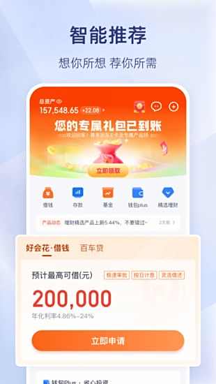 百信银行是经中国银保监会批准设立的国有控股互联网银行,为您提供银行存款、投资理财、保障保险、信用借款等一站式金融服务。不出门,轻松体验刷脸开户,从此金融服务随叫随到,灵活理财新选择,会赚钱的钱包,灵活投资、实时到账。