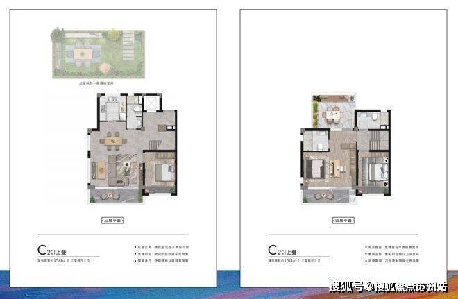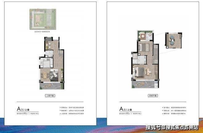 来看户型,面积段有两种——建面约95㎡下叠、上叠;建面约150㎡下叠、上叠.
